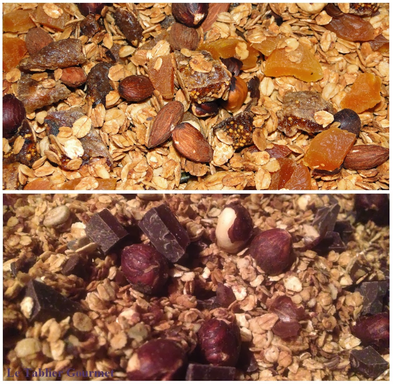 Sous le nom technique et un brin barbare de muesli et de granola, ce n’est ni plus, ni moins qu’une recette de céréales maison que je vous propose. Qu’on se rassure : c’est une recette simple qui ne nécessite rien de particulier, si ce n’est un peu de temps car les flocons d’avoine doivent cuire doucement. D’ailleurs, sur internet on trouve des recettes qui se font à la poêle mais comme je n’aime pas me compliquer inutilement la vie, je préfère la recette au four qui ne nécessite aucune intervention, si ce n’est remuer les flocons deux/trois fois au cours de la cuisson…