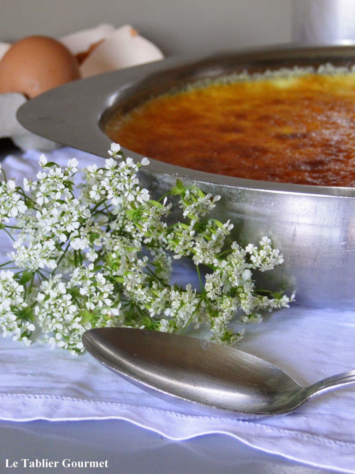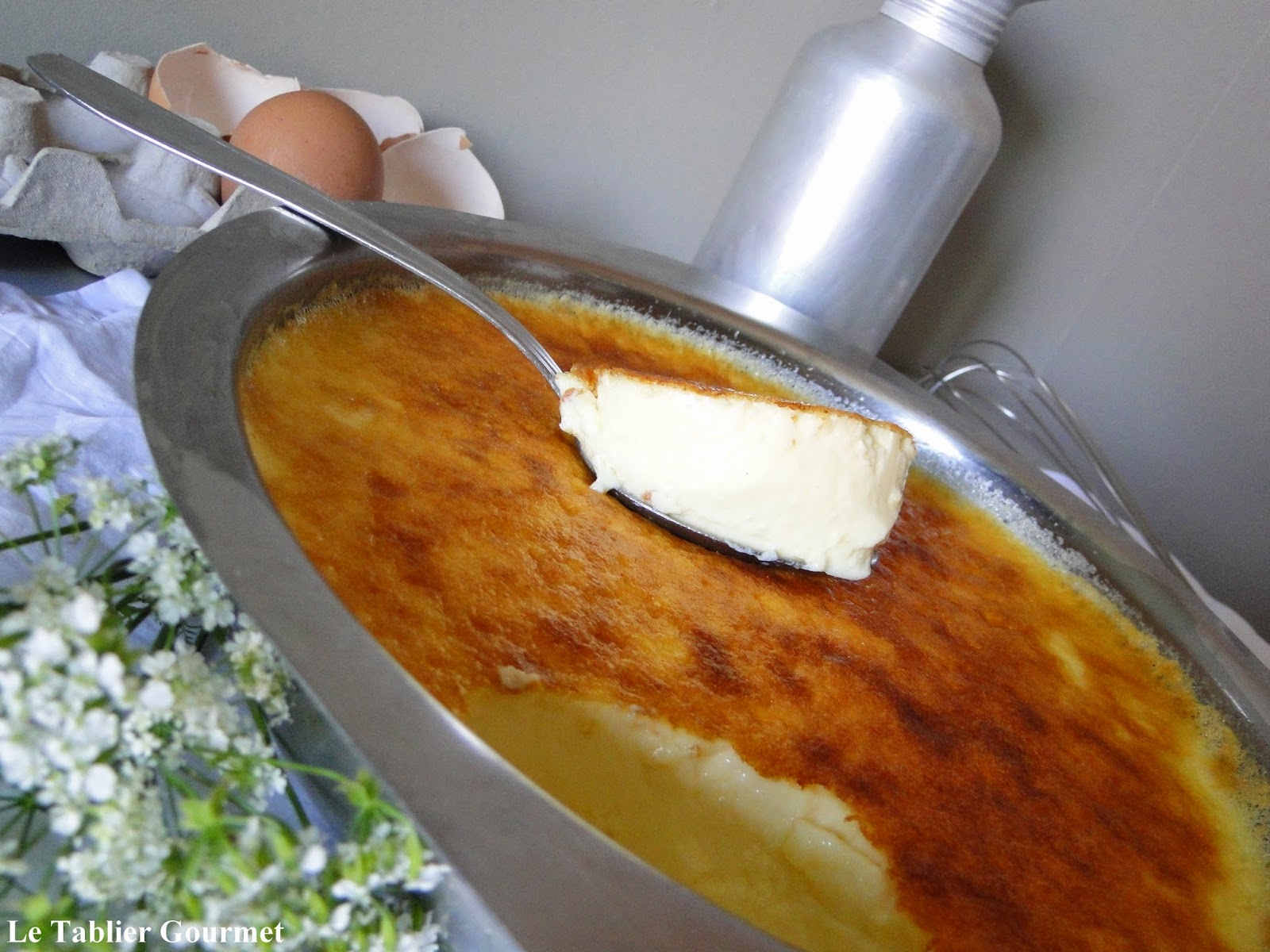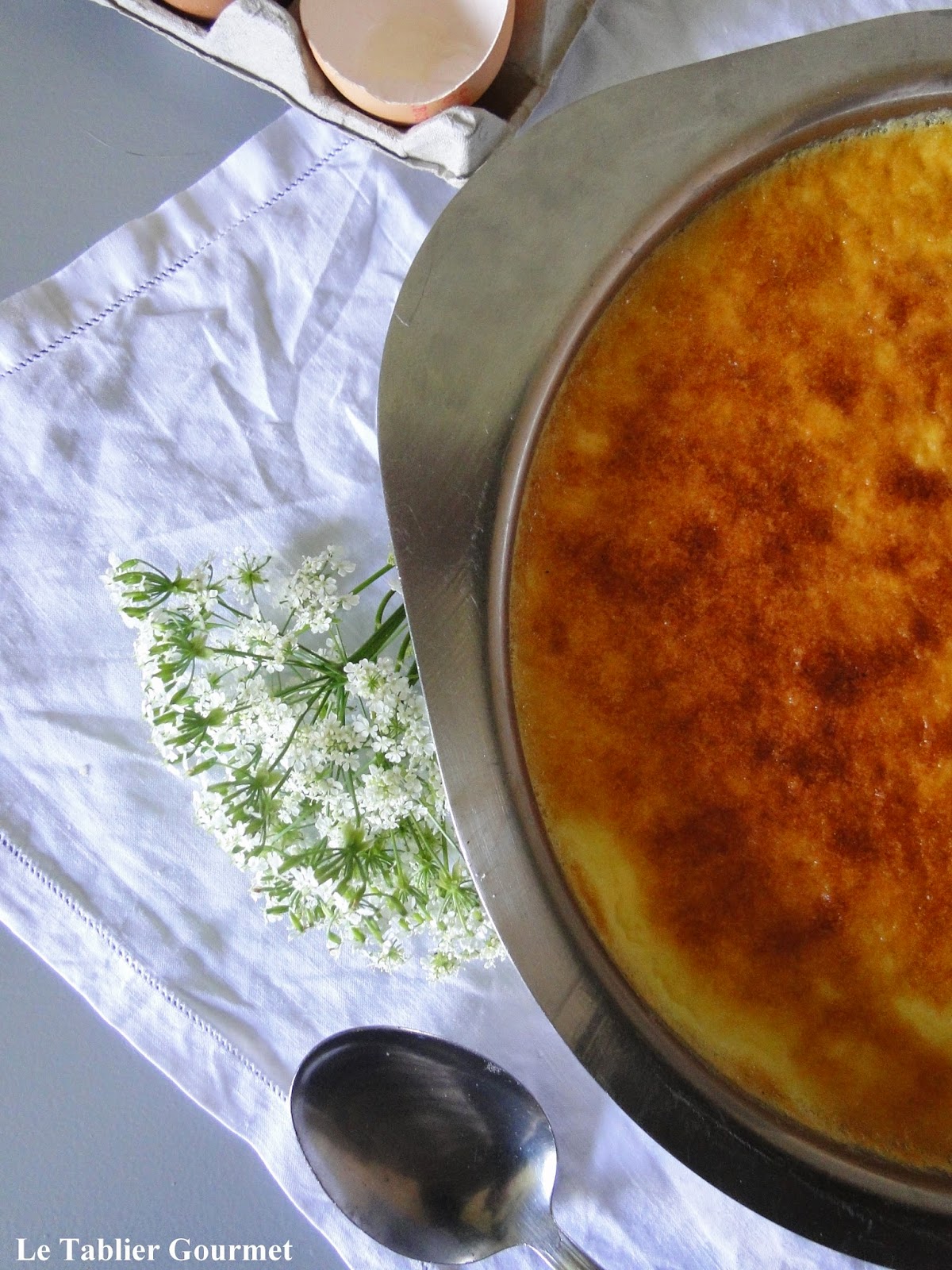 – Normalement, si vous avez fouetté vivement lors de l’incorporation du lait dans les œufs, vous obtenez quelque chose de très mousseux. C’est logique et c’est cette mousse qui, à la cuisson, va donner la texture si particulière de la « peau » de vos œufs au lait.