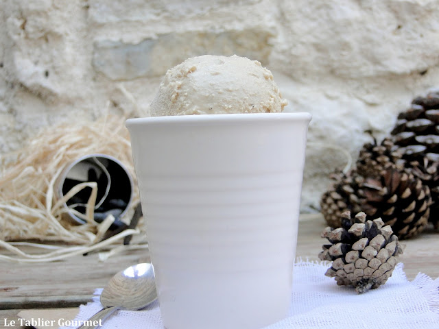 – Le problème de la glace maison est que, réalisée à l’avance, elle a tendance à se transformer en bloc de béton (surtout les sorbets, moins les crèmes glacées). C’est ce qui m’a longtemps rebuté et retenu de me lancer dans l’aventure glace. Mais ça, c’était avant. Avant que je ne farfouille dans mes bibles. La meilleure réponse que j’ai trouvée est celle de Philippe Conticini (bah oui, qui d’autre). En fait, il dit clairement que nous ne pouvons pas obtenir une crème glacée telle que chez le glacier ou dans le commerce. Par conséquent, il conseille de passer la crème anglaise à la sorbetière au dernier moment. Au besoin, si la crème glacée n’est pas assez prise (selon que vous avez une turbine ou une simple sorbetière), il suffit de la passer au congélateur 1/2h, 1h. De cette manière, vous aurez une crème glacée crémeuse à souhait.