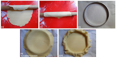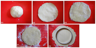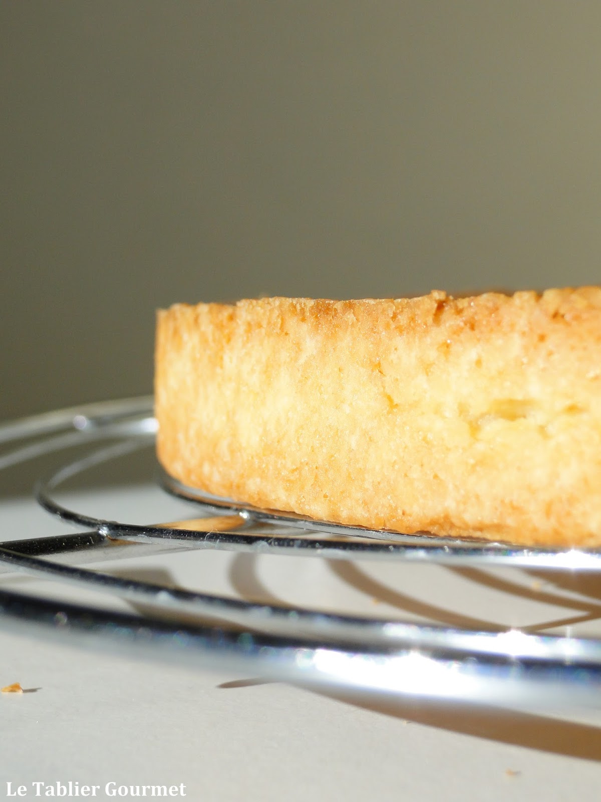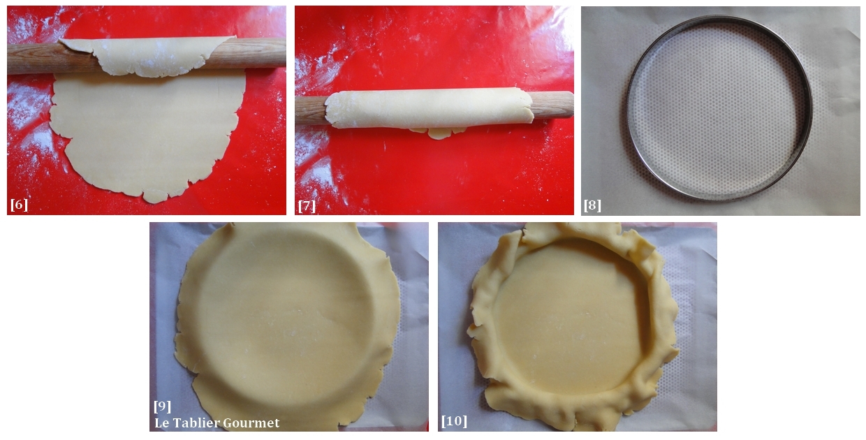 Pour ce qui suit (texte et photos), je travaille avec une pâte sablée (dans ces proportions), une toile SILPAT ou du papier sulfurisé qui tapisse une plaque en fer perforée, un cercle à tarte inox Gobel (diamètre 24 cm et hauteur 2 cm) et 1kg de riz classique.