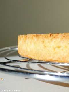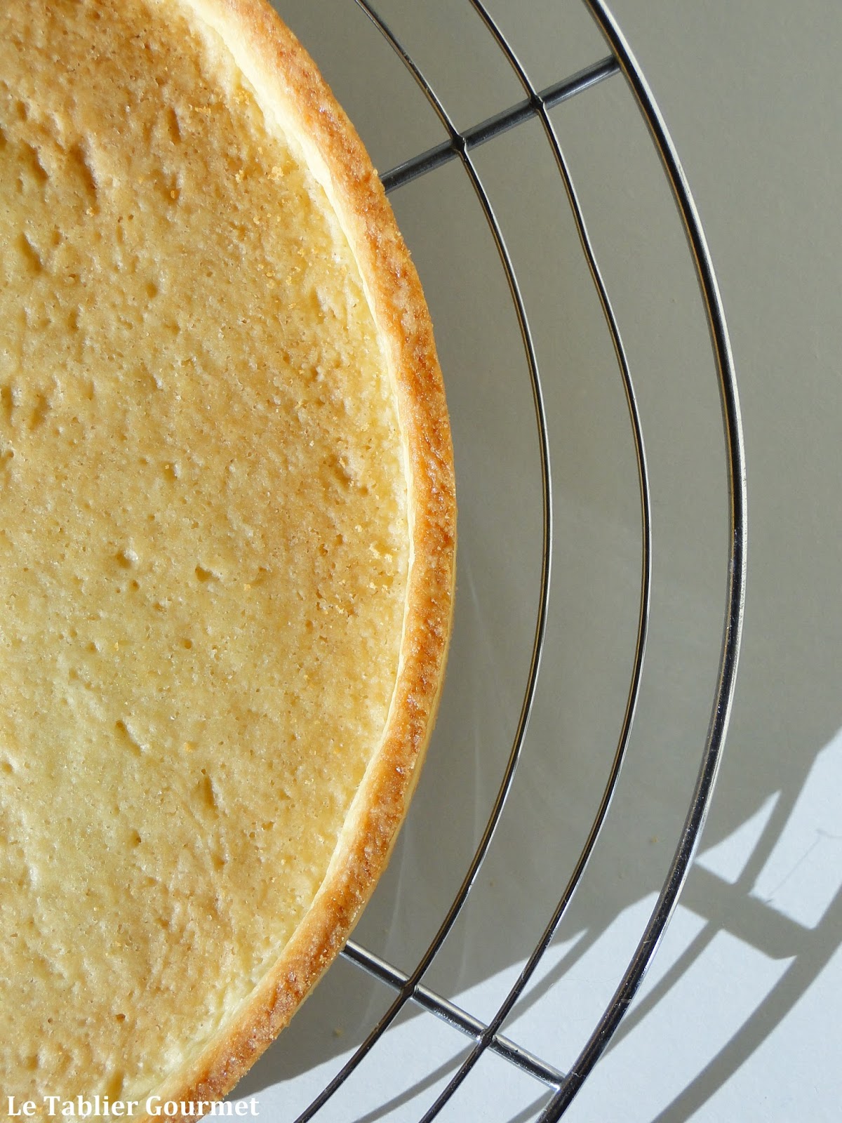 8. Quand la pâte est cuite, on la dépose sur une grille pour la faire refroidir (ça permettra à l’excédent d’humidité de s’échapper et de ne pas rerentrer dans la croute). Pour parfaire votre œuvre, vous pouvez très légèrement « gommer » les imperfections de votre tarte (égaliser les bords, supprimer un excédent de pâte…) avec un économe [22].