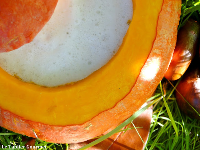 Entrée chaude (et bio) + hiver + Halloween ? La soupe de potimarron et émulsion de lait à la chataigne de Florent Ladeyn