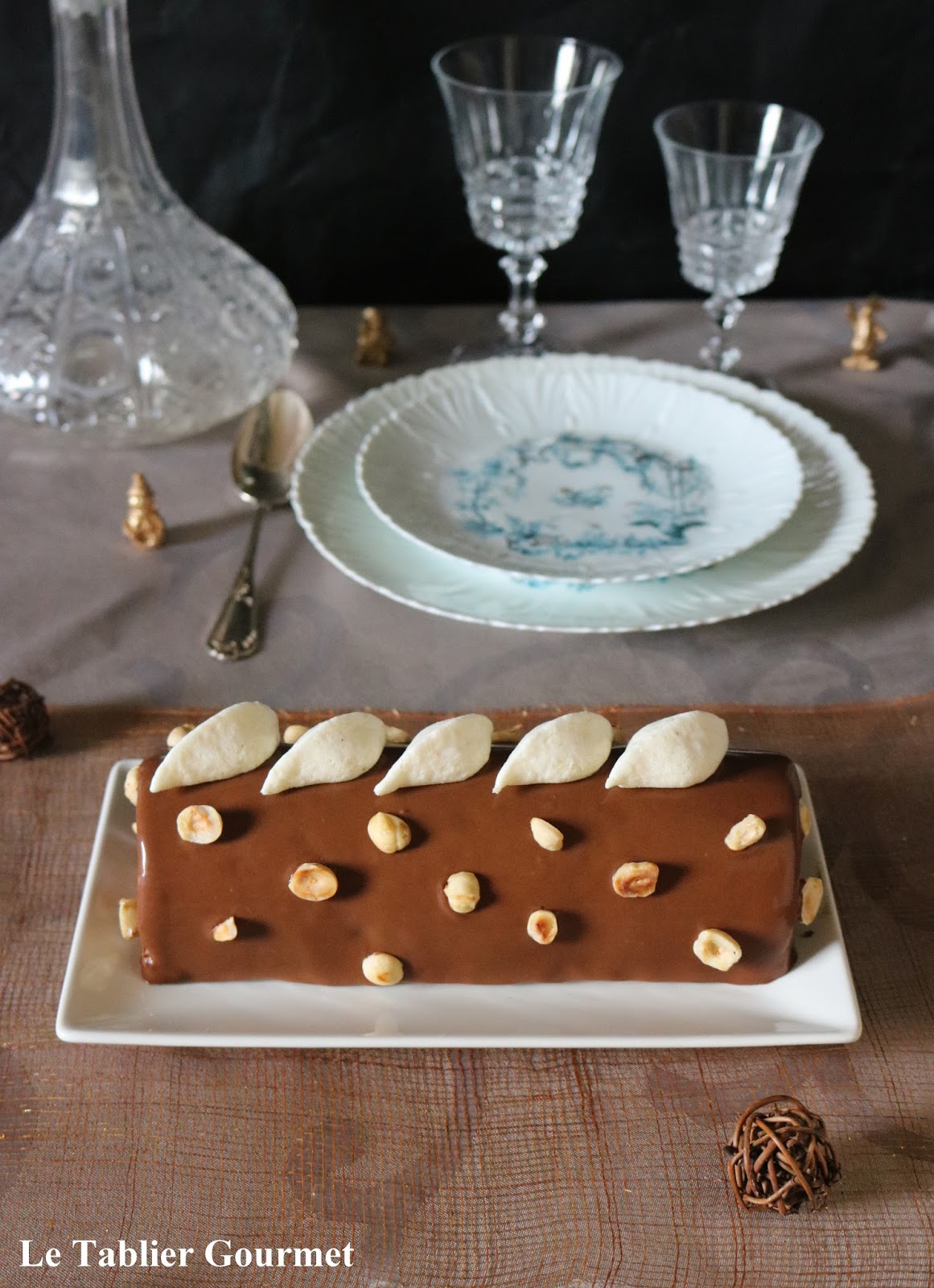 2. Quand le glaçage est tiède/froid, on nappe la bûche congelée en une fois et sans retouche (enfin le moins possible) à la spatule.