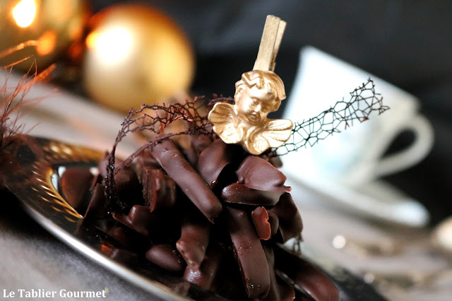 – Si vous êtes motivés et souhaitez faire de magnifiques orangettes, vous pouvez tempérer votre chocolat. Personnellement, je déteste le travail du chocolat 🙂
